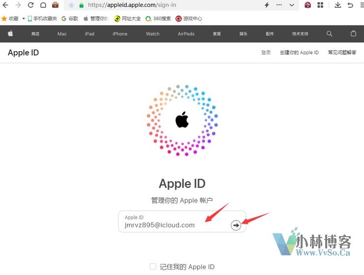 1、首先我们打开苹果id的官网(苹果id官网:https://appleid.apple.com),然后在方框里面输入你的apple id账号,再点击下一步。