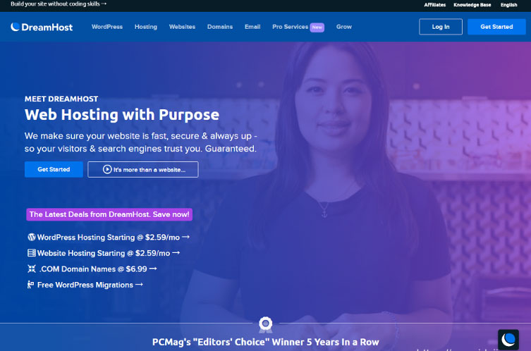 DreamHost,成立于1999年,是一个美国的主机商家,至今为超过40万用户提供超过150万个网站托管。DreamHost提供的业务包括:域名注册,虚拟主机(包括专业WordPress主机,特殊优化处理),VPS,VPS云(openstack云平台),云存储,独立服务器。并且DreamHost是著名开源程序WordPress官方多年来推荐的主机商。
