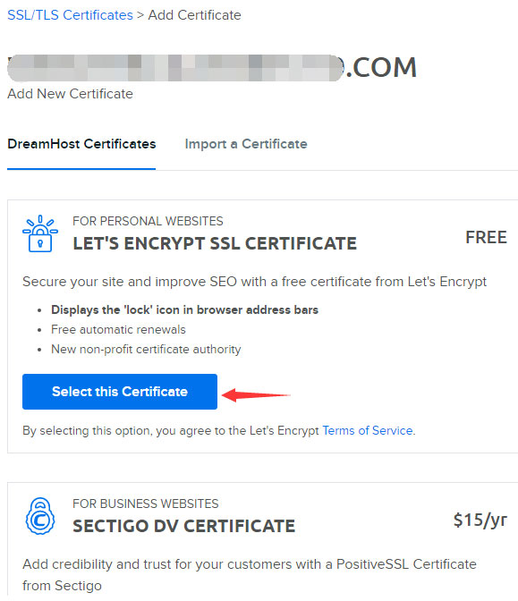 使用DreamHost主机如何给网站安装SSL证书,开通HTTPS