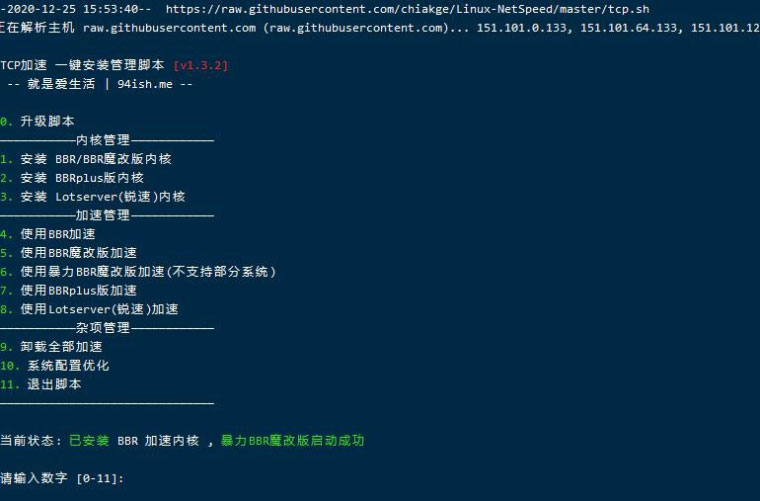 wget -N --no-check-certificate "https://raw.githubusercontent.com/chiakge/Linux-NetSpeed/master/tcp.sh"