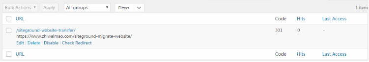 最后,在已添加的301跳转,我们可以对该跳转进行编辑、删除、停用已经检查等操作。
