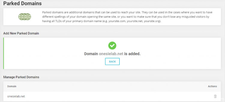 第三步:现在我们就可以看到域名绑定已经成功,在下方的Manage Parked Domains可以对绑定的域名进行删除等相关操作。