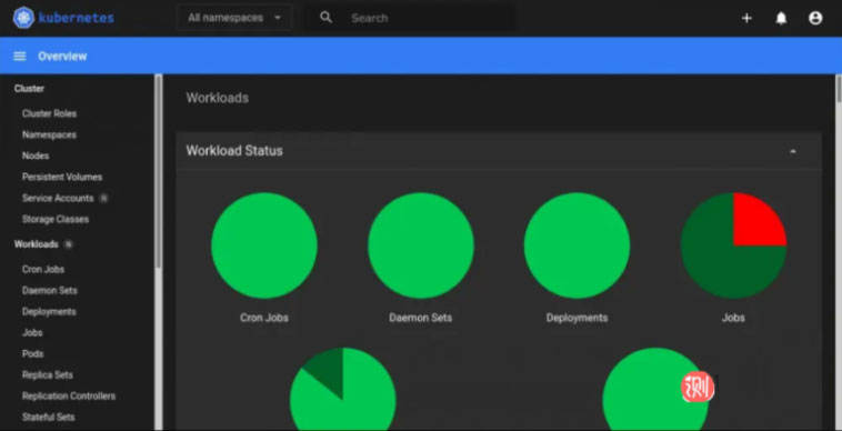 DigitalOcean云服务器内置了对Kubernetes仪表板(Kubernetes项目的官方Web UI)的支持。单击右上角的“ Kubernetes仪表板”按钮以在新选项卡中启动该应用程序。将使用有效的身份验证令牌对其进行预配置。