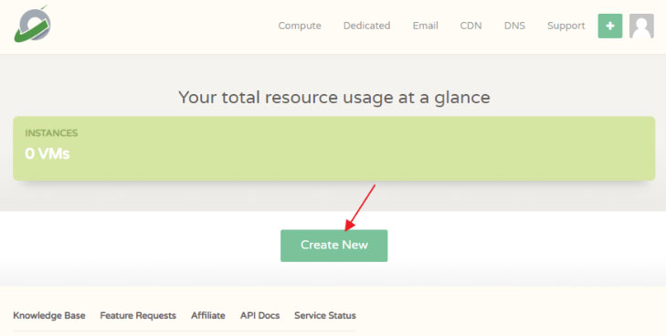 首先打开CloudCone官网,然后登录账号进入后台管理中心,点击“Create New”方案配置新产品方案,如下图所示: