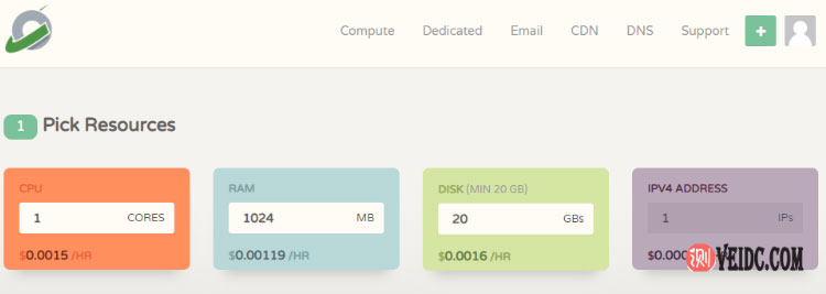 进入产品方案配置页面,根据自身的需求合理选择方案,主要就是CPU、内存、硬盘以及IP数量的选择,具体如下: