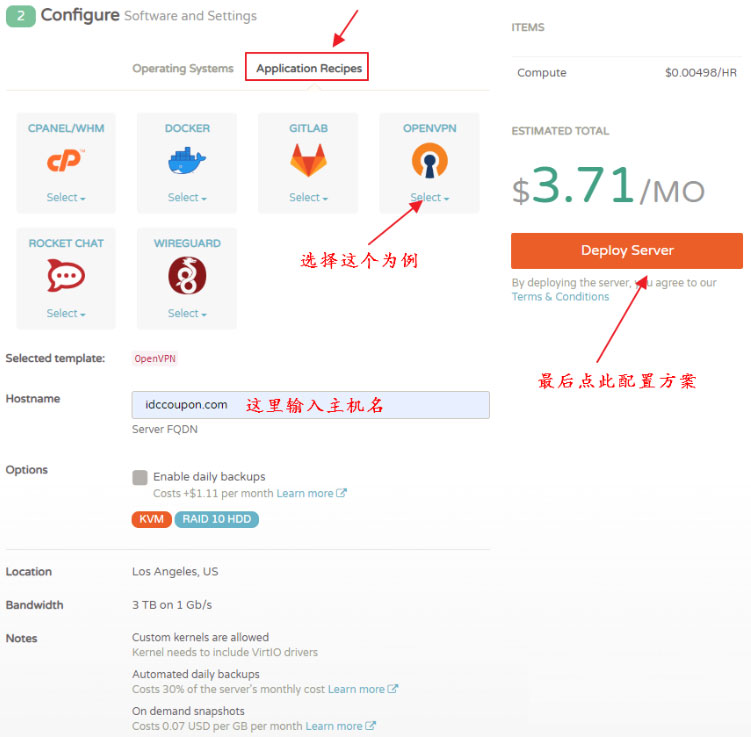 细心的朋友可能会发现,CloudCone一键安装配置APPS应用程序和其方案购买过程差不多,只是将操作系统替换成应用程序了。